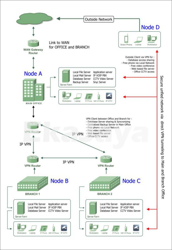 Metode ini dipandang tepat dibanding kantor pusat harus membroadcast 1 per 1 perangkatnya (misal : database, file sharing, VoIP, dll) secara (IP) publik, karena setiap perangkat yang dipublish ke (IP) publik akan meningkatkan resiko serangan (flood, spam, DDoS, dll)